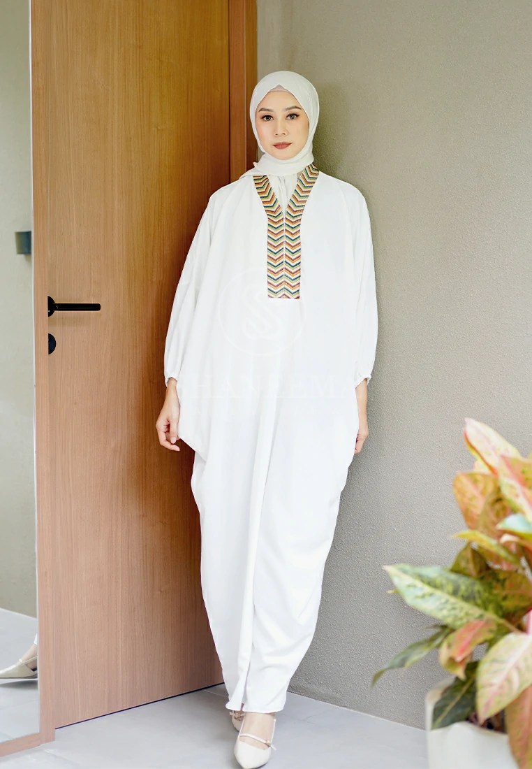 Model Kaftan yang dilengkapi dengan saku pada bagian samping dan terdapat bordiran berwarna gold sehingga terlihat sangat elegan saat dikenakan.Terdapat karet pada ujung lengan dan sleting pada bagian depan sehingga Breastfeeding Friendly. Get this super comfy Linea for your special Raya Day ✨